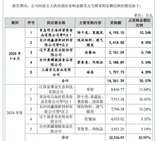 晟麦实业是英氏2024年第四大供应商、2025年上半年第三大供应商,次要为英氏供给婴长儿佐餐油类产物的委托出产办事。